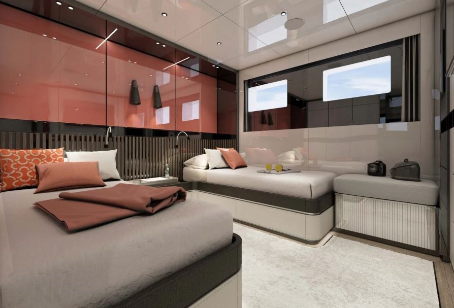 Built as a tri-deck pocket explorer with a steel hull and aluminium superstructure, this 25.9-metre yacht marries robust expedition capability with modern luxury. Styled by Hot Lab, the interior blends Carrara marble with dark wood parquet and generous natural light. The layout accommodates up to eight guests in four en-suite cabins, including a main-deck master, a VIP and two twins on the lower deck. Outdoor living spans all three levels, from a sundeck with jacuzzi to a bridge-deck lounge and alfresco dining area that create seamless indoor-outdoor flow, while the bridge deck also provides generous storage for tender and watersports toys. Powered by twin Cummins QSM11 (455 hp each), she cruises efficiently at 8 knots with an approximate 6,000-nautical-mile range and reaches 11 knots at the top end. Zero-speed stabilizers ensure comfort at anchor, and both bow and stern thrusters make close-quarters manoeuvring easy. Advanced ship systems include dual Kohler 35 kW generators, a Webasto air-conditioning plant and integrated AV/IT automation—delivering the autonomy, comfort and reliability expected of a true long-range explorer
