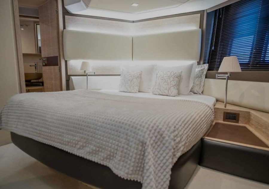 A sleek 2015 Azimut 60 Fly that blends indoor outdoor living with confident performance and real world usability. The bright, elegant salon opens seamlessly to the aft cockpit, while the open flybridge becomes your private terrace at sea perfect for sun lounging, long lunches and sunset cruising. Below, the family-friendly layout sleeps six guests in three suites (full-beam master, VIP double, twin), with optional crew space for up to two to keep life aboard effortless on longer stays. Everyday comforts are dialed in: Wi-Fi, full air conditioning, surround sound audio and a fully equipped galley make entertaining easy and downtime relaxing. Built in GRP for strength and efficiency and powered by twin MAN 800 hp, she cruises comfortably at around 26 knots and reaches up to 31 knots delivering the pace for quick island hops and the refinement for unhurried coastal passages. Stylish and fast, this 60 footer captures the sweet spot of space, comfort and performance.