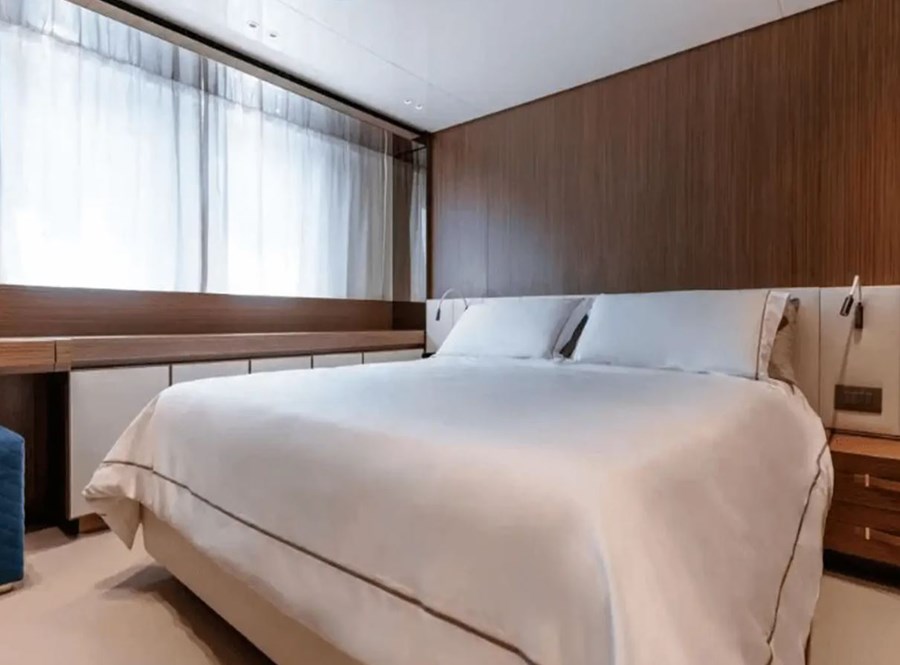 Delivered in 2022, the Sanlorenzo SX112 is a stunning example of Italian craftsmanship and innovation. Presented in immaculate condition, this exceptional yacht stands out as one of the rare SX112 models featuring an owner’s suite on the main deck — complemented by four additional guest cabins on the lower deck. Custom-designed to perfection, the interior blends refined elegance with luxurious comfort, showcasing Sanlorenzo’s signature attention to detail and superior build quality. One of the yacht’s most striking features is the expansive aft deck, equipped with fold-down bulwarks that transform the space into a vast beach club with seamless access to the sea — ideal for relaxation and entertaining. Powered by four 1,000 HP Volvo IPS diesel engines, the SX112 reaches a top speed of 23 knots and comfortably cruises at 20 knots. At an economical speed of 12 knots, she boasts an impressive range of nearly 1,500 nautical miles. To enhance onboard comfort, the yacht is also fitted with an advanced at-anchor stabilization system.